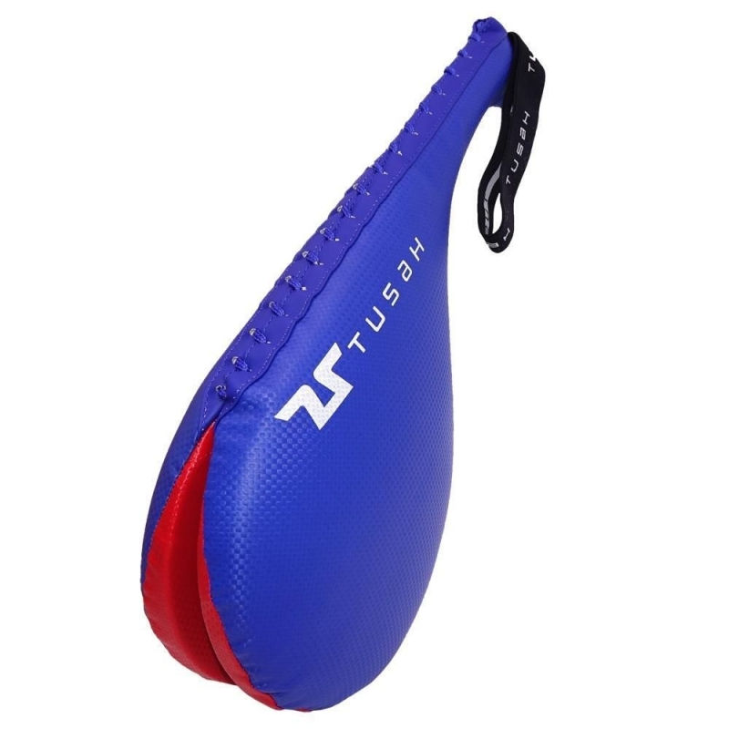 La cible à double coup de pied Tusah est faite de mousse et recouverte de PU. La palette a été imprimée avec le logo Tusah.