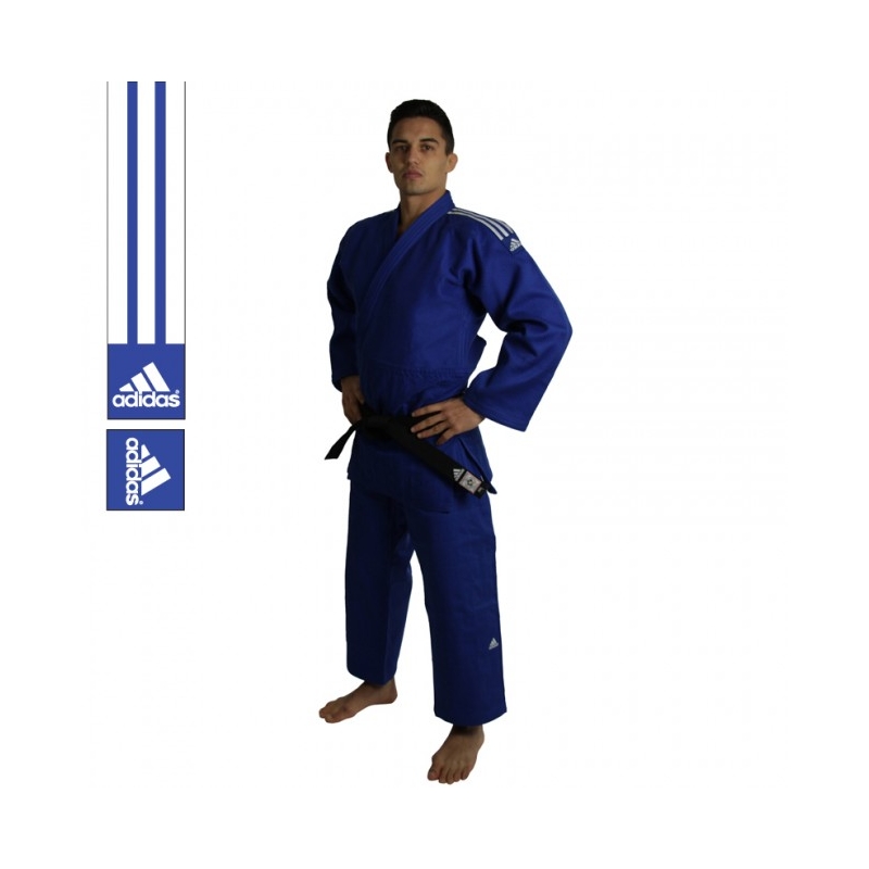 Dit judopak van adidas is gemaakt voor kampioenen. De jas is gemaakt van 75% katoen en 25% polyester, de broek is gemaakt van 100% katoen. Het katoen wat gebruikt wordt is uniek verwerkt: het pak krimpt niet. Daarbij is het pak op diverse plekken verstevigd voor extra duurzaamheid. De riem van de jas is 4 cm breed en 1 cm dik volgens de officiële IJF-regels. De broek heeft een vetersluiting zodat deze goed blijft zitten. Op de schouders zijn de adidas strepen met logo geborduurd, onderaan de jas staat het officiële IJF logo.