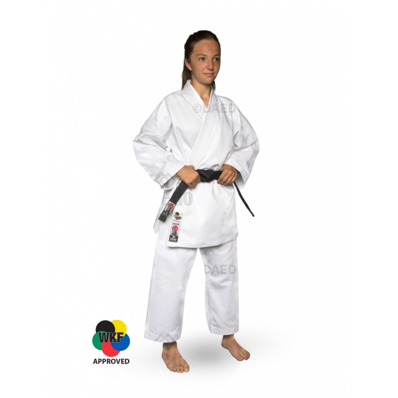 Gemaakt van hoogwaardig tergal. Moderne snit, elegant met lange jas en lange snitten aan beide zijden. Zeer licht van gewicht, ideaal om mee te trainen. Aanbevolen voor beginners en Kumite-deelnemers.